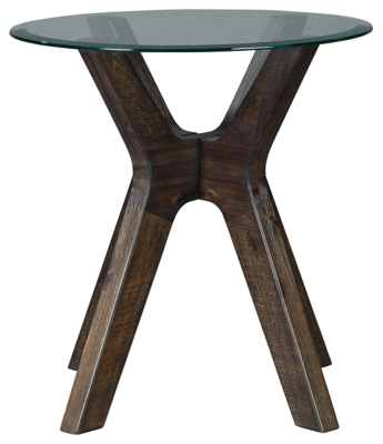 If youre going for top quality solid wood end tables are strong and durable and depending on the construction can complement most styles. Paired with a polished chrome-tone base its the perfect accent for your city chic look. Flared sculptural base with tempered glass top is equally at home in a boho-chic retreat or urban industrial oasis.